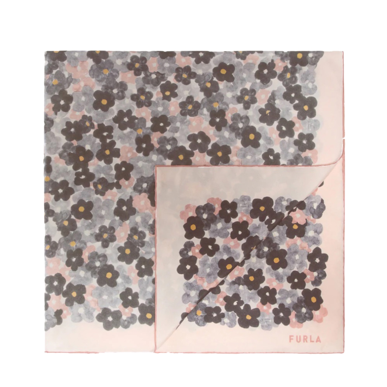 Furla Tortona Carré Toni Urban Gray este o eșarfă elegantă realizată din mătase ușoară, decorată cu un imprimeu floral delicat în tonuri de gri urban, roz pal și accente subtile de galben. Designul său adaugă o notă sofisticată oricărei ținute, fiind ideală atât pentru purtare la gât, cât și ca accesoriu pentru geantă. Finisajele fine și textura moale reflectă rafinamentul specific casei Furla.