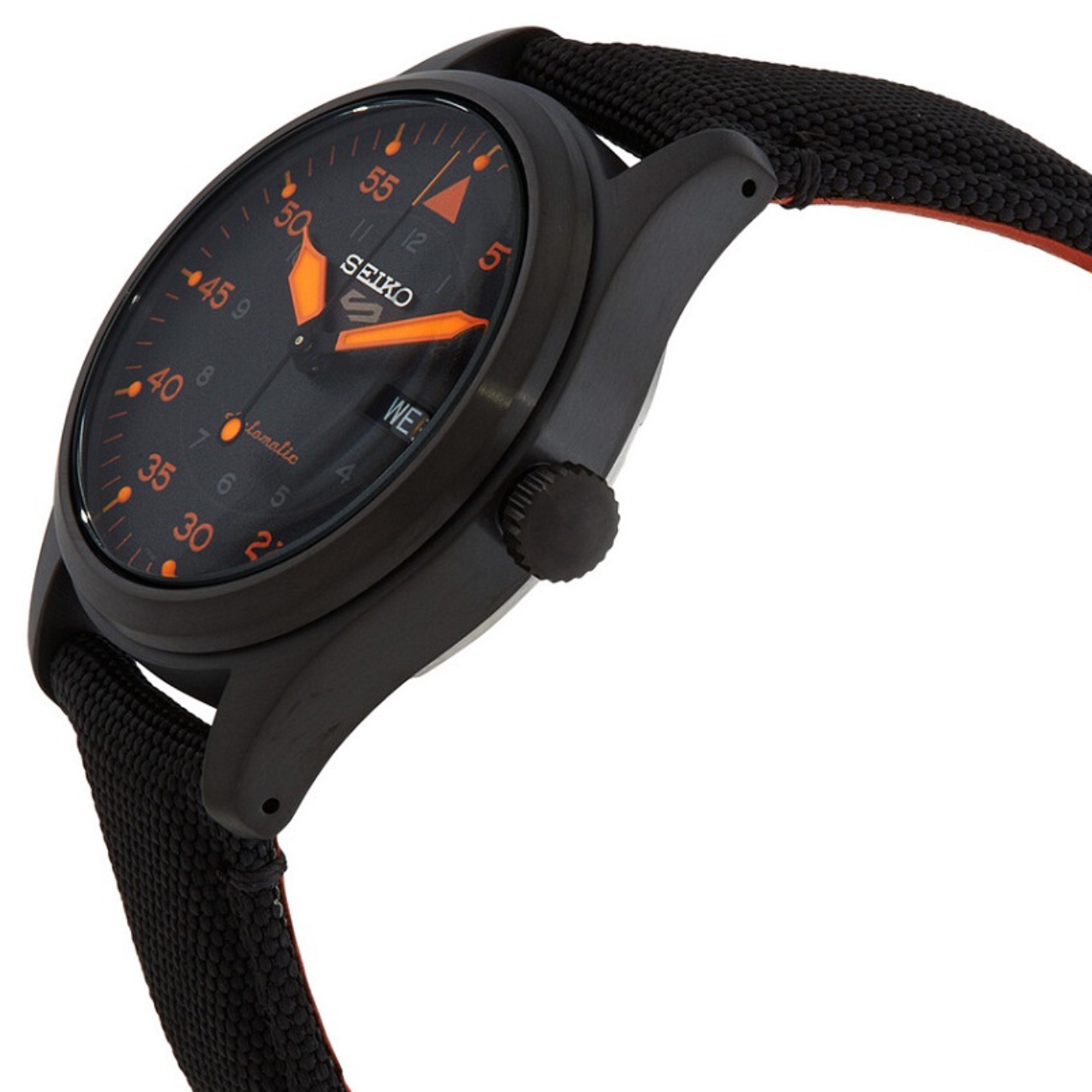 Ceasul Seiko 5 Sports SRPH33K1 îmbină stilul urban cu robustețea specifică modelelor Seiko, fiind o alegere inspirată pentru cei care apreciază designul sportiv și fiabilitatea mecanică. Carcasa neagră din oțel inoxidabil este completată de un cadran negru cu detalii portocalii, oferind un contrast puternic și o vizibilitate excelentă.