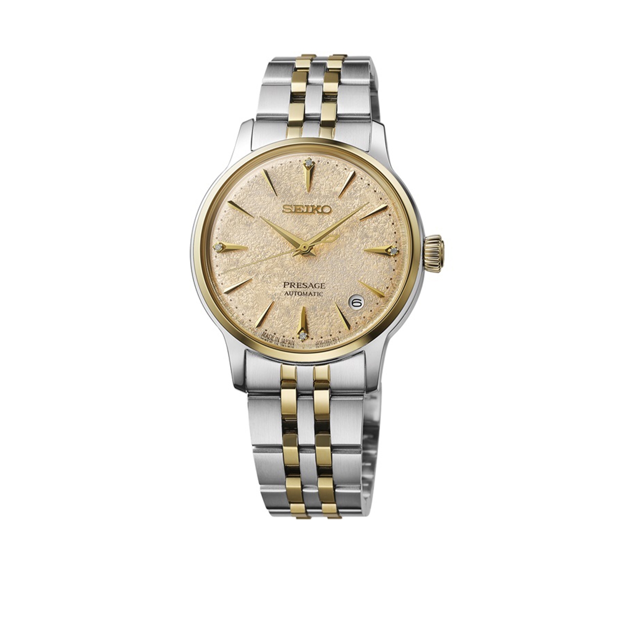 Noile modele „Frozen Cocktails” aduc o briză răcoritoare și plină de viață în colecția populară Cocktail Time, evocând spiritul verii și prospețimea băuturilor estivale. Indicatorii au fost redesenați pentru a include patru diamante strălucitoare, care adaugă un plus de eleganță și rafinament subtil. Brățara conică, cu linii fluide, subliniază silueta delicată a ceasului, iar capacul plat al carcasei asigură o purtare confortabilă, adaptată stilului de viață activ. Modelul SRPL64J1, inspirat de Frozen Banana Daiquiri, îmbină ludicul cu rafinamentul. Cadranul său într-o nuanță pastelată de galben moale, aproape cremos, conferă ceasului o prezență delicată, plină de farmec și prospețime, perfectă pentru zilele însorite.