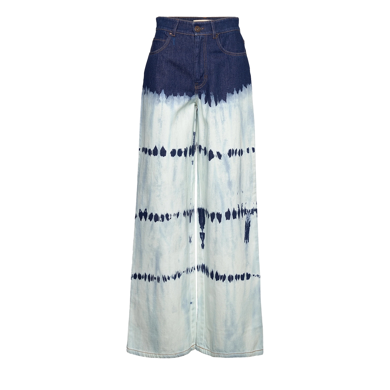 Această pereche de blugi este fabricată din țesătură denim de bumbac vopsit manual, are 5 buzunare și un croi relaxat.