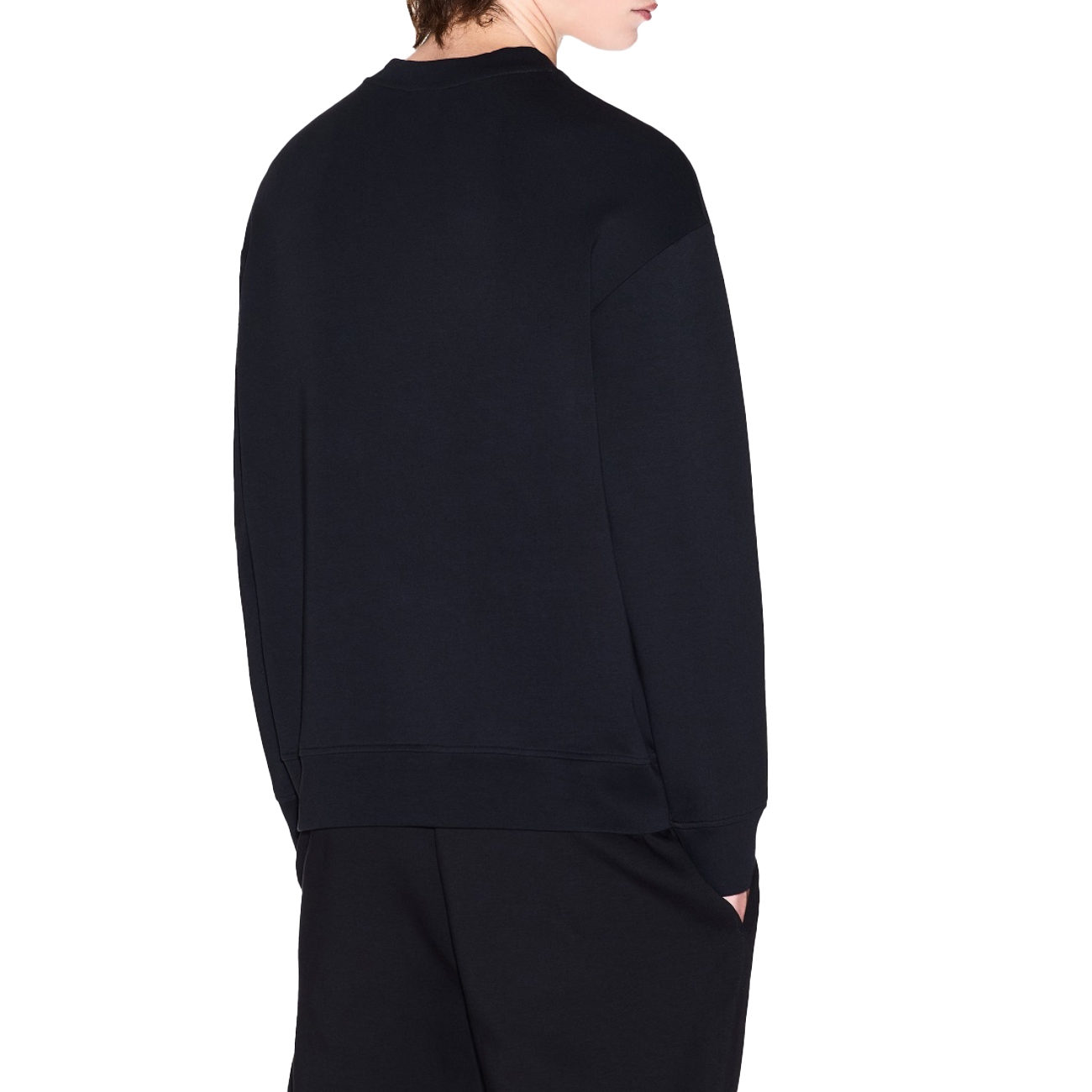 Bluză cu mânecă lungă și guler rotund, decorată cu logo-ul emblematic Armani Exchange în relief pe partea frontală. Croiala lejeră și designul minimalist oferă un aspect modern și ușor de integrat în ținutele de zi cu zi.