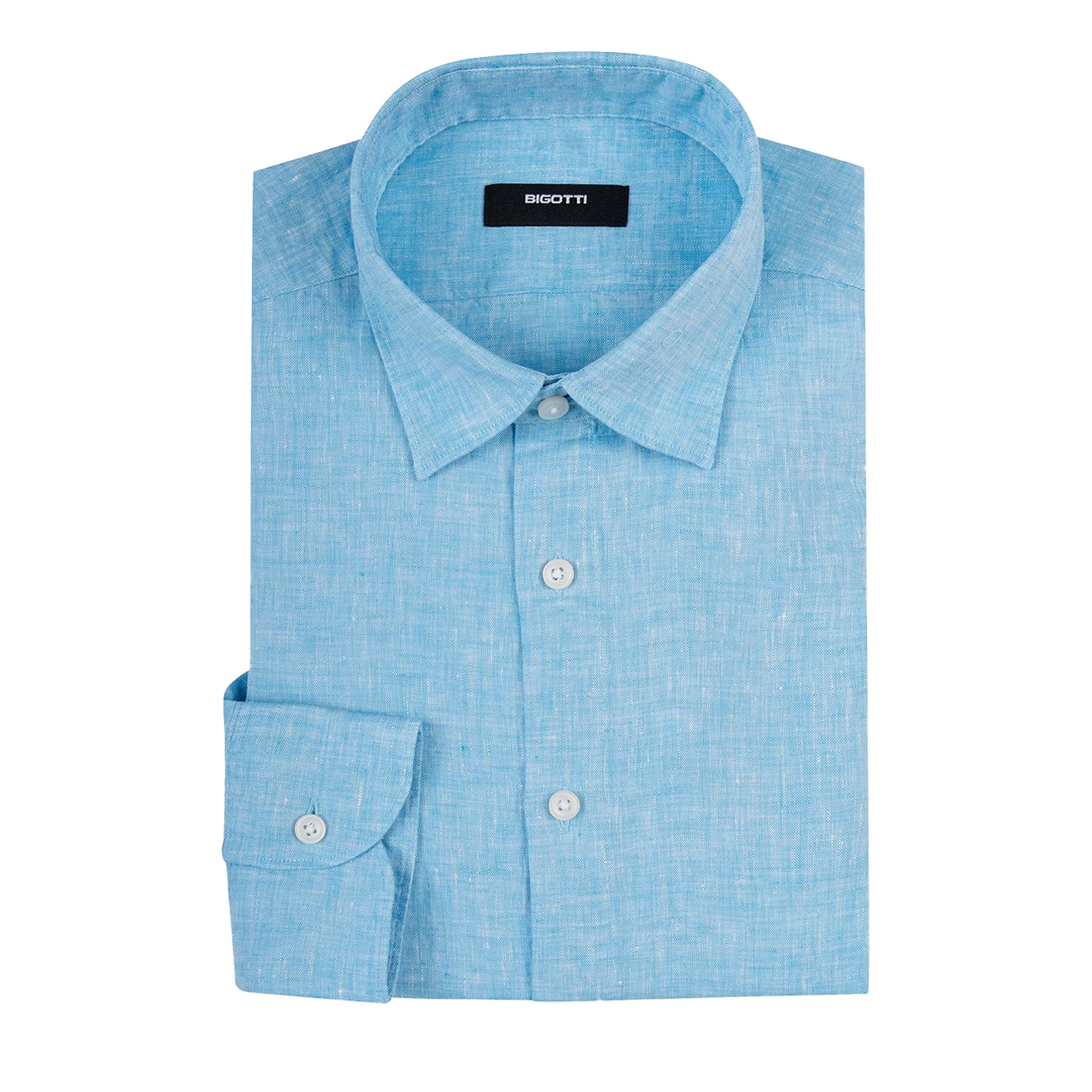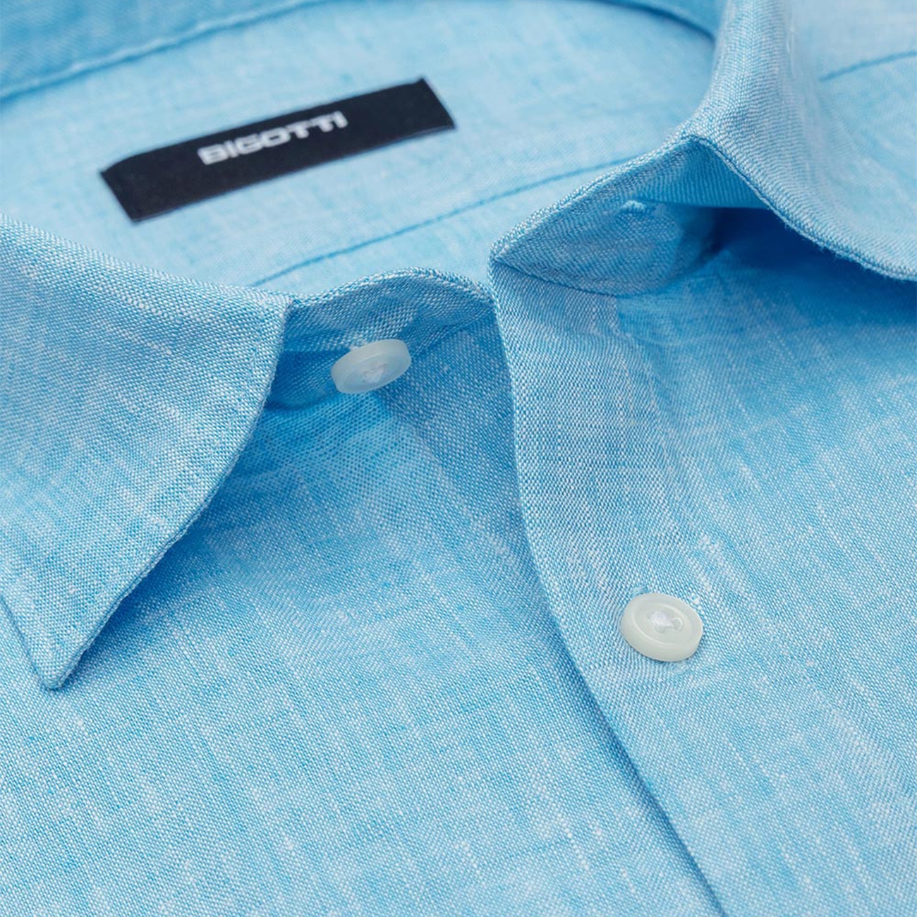 Cămașa casual Bigotti din in natural emană prospețime și rafinament, fiind ideală pentru zilele toride. Țesătura ușoară și respirabilă oferă confort sporit, iar nuanța de albastru deschis adaugă o notă relaxată și elegantă, perfectă pentru ținute de vară lejere sau semi-formale.