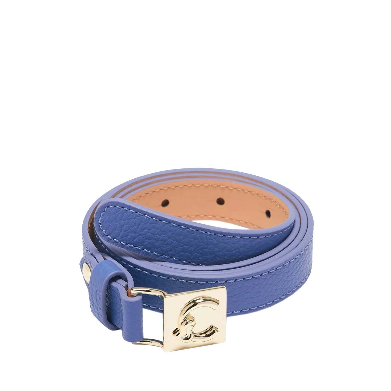Un accesoriu elegant și rafinat, cureaua COCCINELLE C-Me adaugă un accent modern oricărei ținute. Realizată din piele naturală texturată, aceasta impresionează prin nuanța sofisticată de albastru "Azul" și catarama metalică aurie cu logo-ul iconic C-Me, simbol al stilului contemporan.