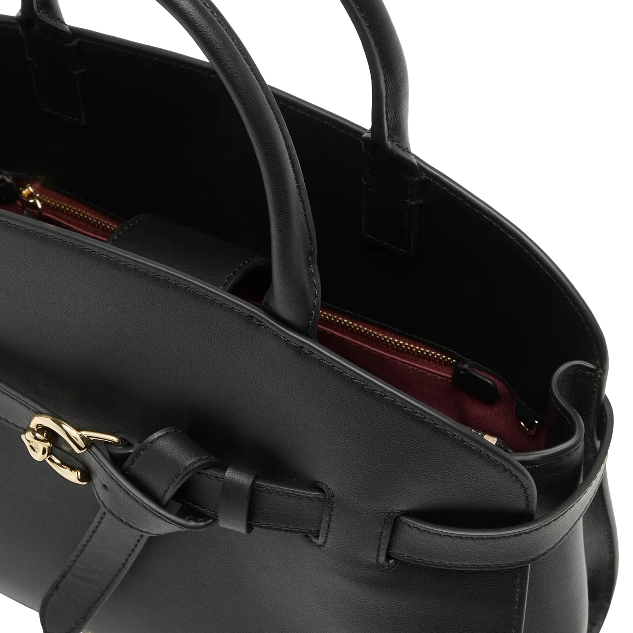 Detaliul metalic aurit, integrat discret în design, adaugă o notă luxoasă, iar cureaua decorativă aduce un plus de personalitate. Mânerele structurate și cureaua detașabilă și reglabilă oferă libertate de purtare, transformând această geantă într-un accesoriu versatil, potrivit atât pentru ținutele de birou, cât și pentru aparițiile elegante de zi.
