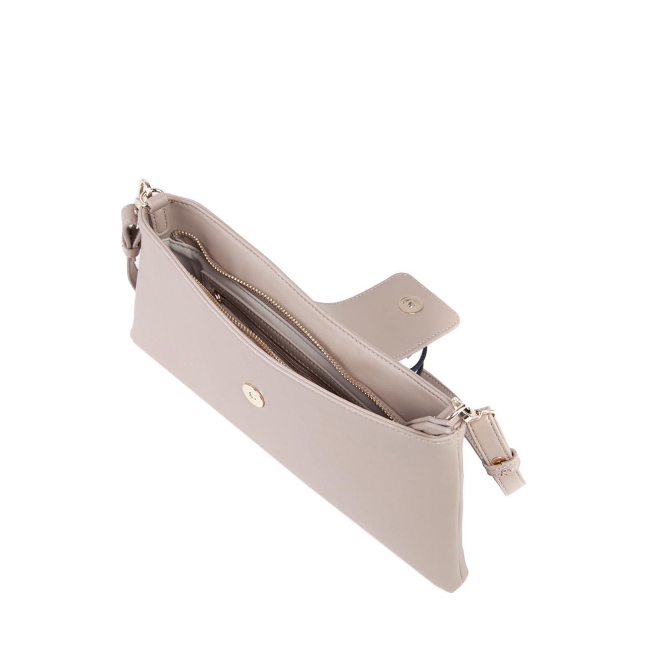 Mario Valentino propune un model minimalist și elegant cu geanta de umăr Aroma, realizată din piele ecologică netedă, într-o nuanță caldă de beige, perfectă pentru orice ținută de zi cu zi. Detaliile metalice aurii, în special logo-ul discret din față și catarama ajustabilă, adaugă o notă rafinată, iar cele două bretele detașabile oferă opțiuni de purtare versatile, fie pe umăr, fie crossbody.