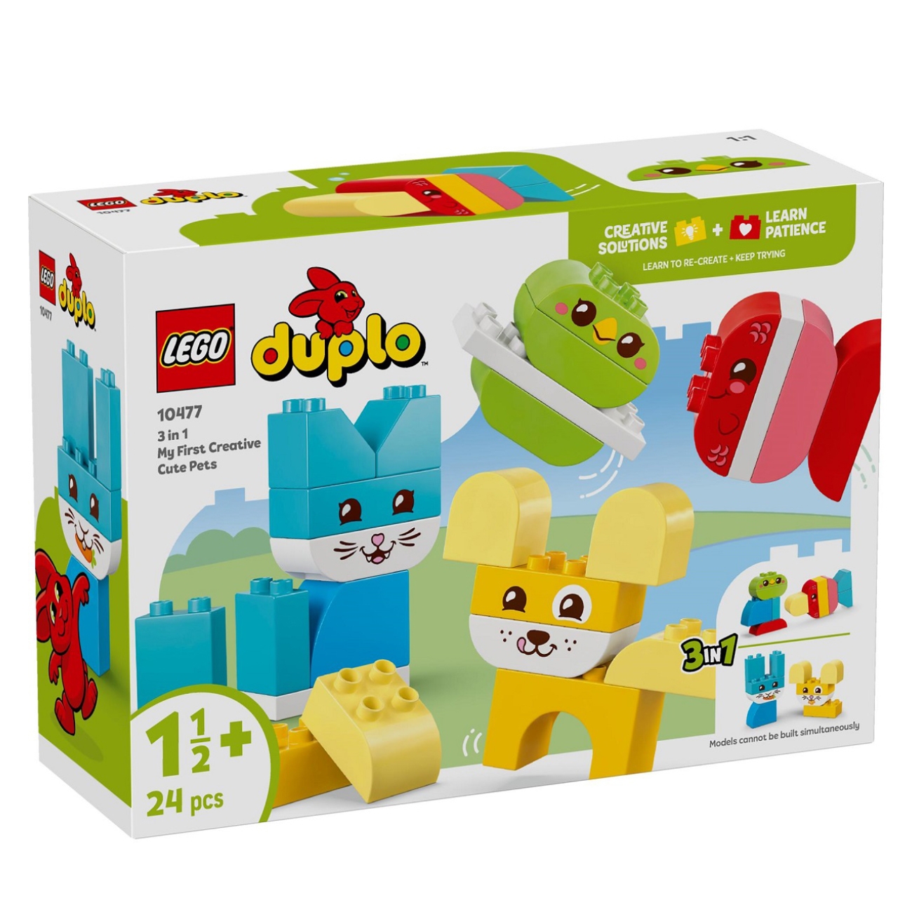 Setul LEGO DUPLO – My First Creative Cute Pets (cod 10477) este o introducere perfectă în lumea construcțiilor pentru cei mici. Cu 24 de piese colorate și ușor de manevrat, copiii pot construi trei animale adorabile – o pisicuță, un cățel și o pasăre – dezvoltându-și imaginația și abilitățile motrice fine.