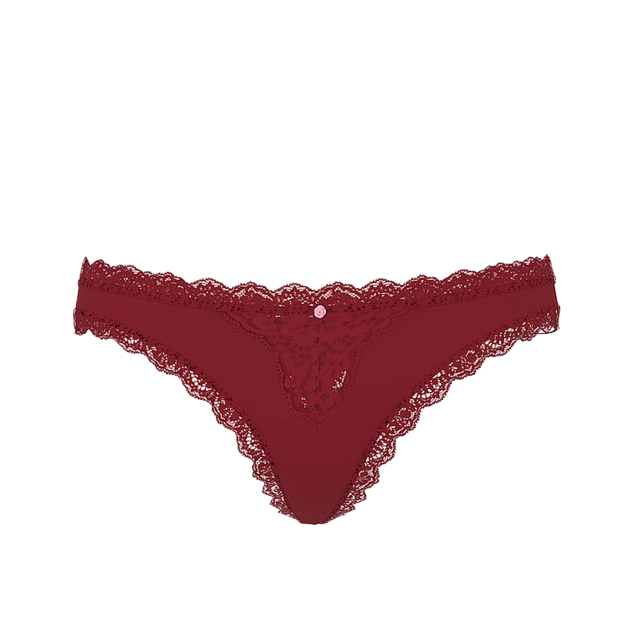 Victoria's Secret Lace-Trim Thong Panty - Sangria Red