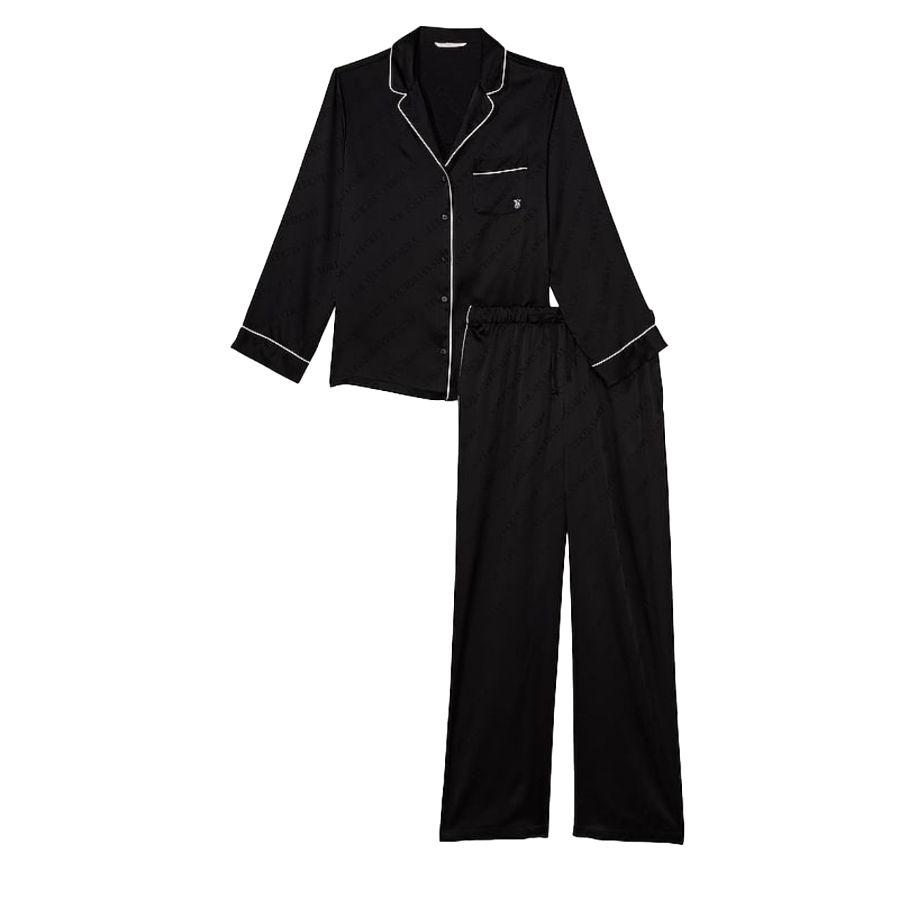 Satin Long Pajama Set - Black Victoria's Secret Pijamale XL