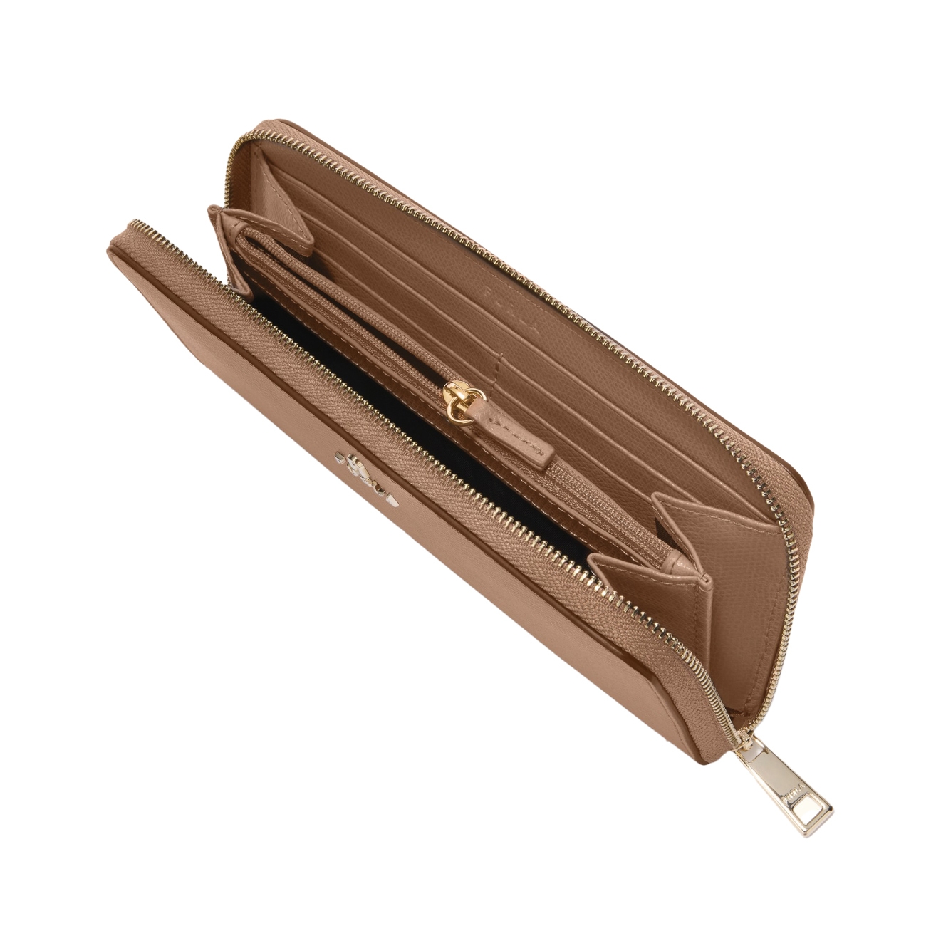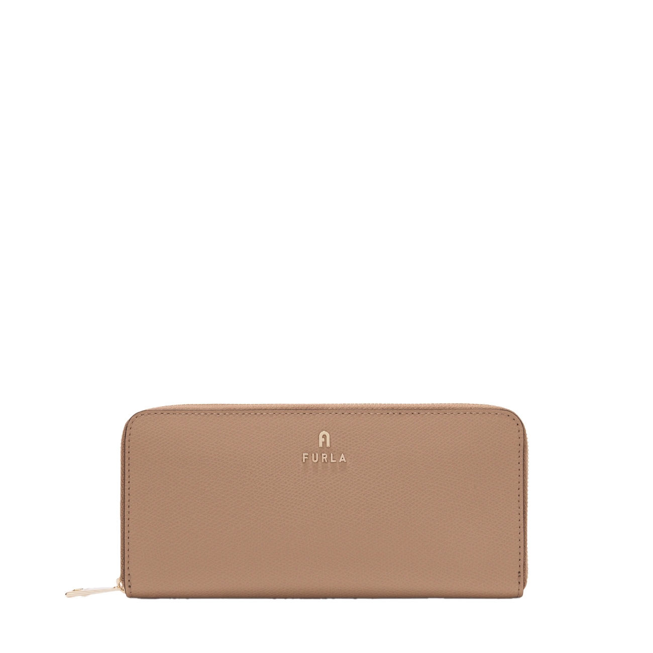 Acest portofel deosebit este fabricat din piele naturală saffiano și are un design feminin. Este încăpător, oferindu-ți spațiul și compartimentele necesare pentru banii si cardurile tale. Este prevăzut cu un buzunar interior cu fermoar pentru monede. Logo-ul Furla mini din metal poziționat în față contribuie la nota de eleganță a portofelului. Asortează portofelul Camelia cu geanta ta Furla pentru un look complet.