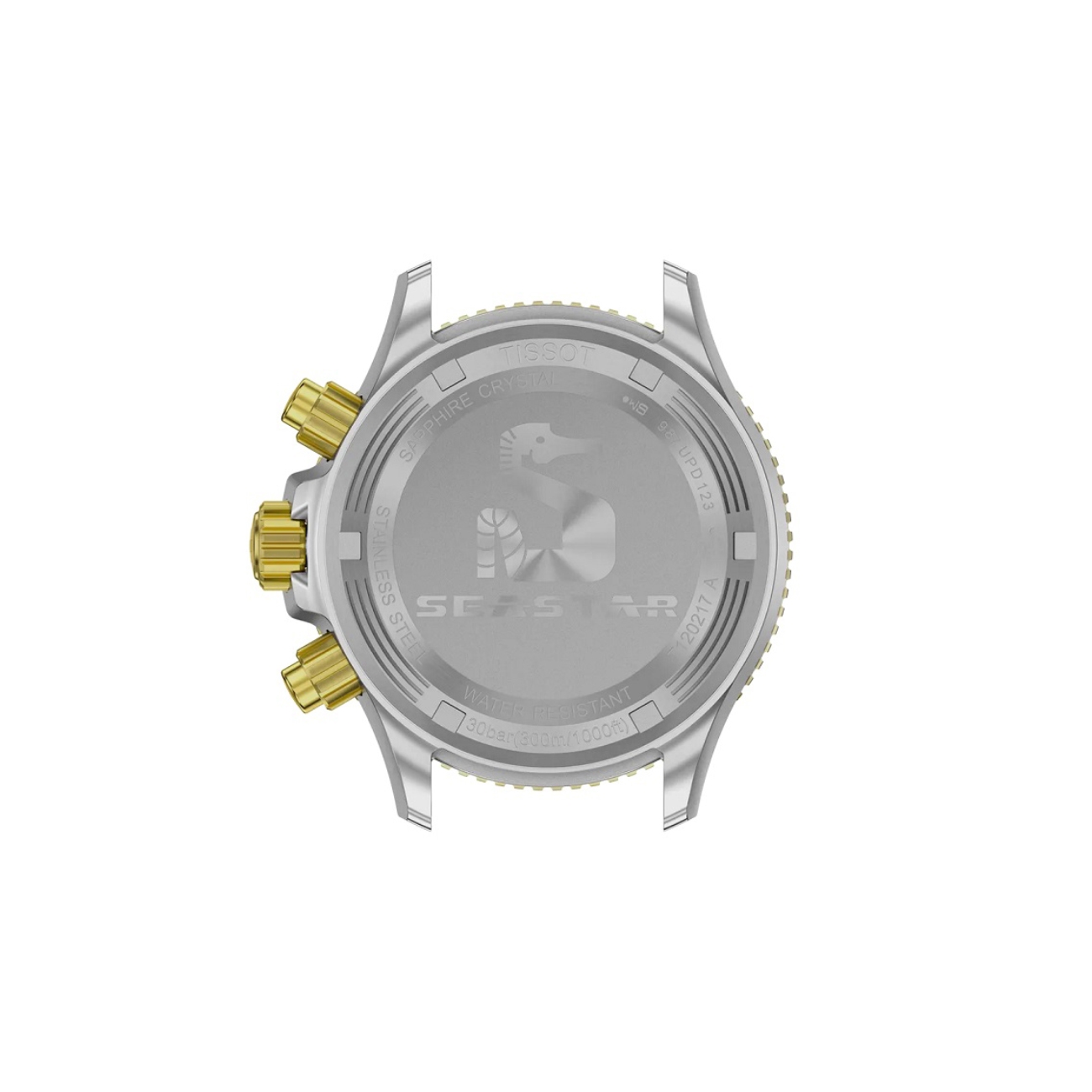 Ceasul Tissot Seastar 1000 Chronograph impresionează prin designul său rafinat și spiritul său sportiv, combinând eleganța atemporală cu performanța de înalt nivel. Realizat din oțel inoxidabil cu accente aurii, acest model aduce un contrast sofisticat între tonurile reci și calde ale metalului. Cadranul negru cu detalii aurii include funcție cronograf, dată și indicatoare luminescente pentru vizibilitate optimă în orice condiții. Mecanismul de înaltă precizie și rezistența la apă de până la 300 m îl transformă într-un accesoriu perfect atât pentru scufundări, cât și pentru uzul zilnic. Brățara bicoloră adaugă un plus de distincție, completând perfect imaginea unui ceas elvețian de excepție.