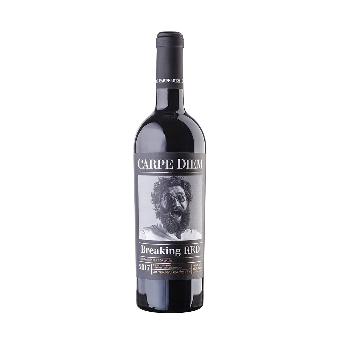 Trăiește fiecare clipă la potențialul ei maxim alături de vinurile Carpe Diem! Breaking Red este un vin roșu sec delicios, ce are un buchet impresionant cu note de mure, ciocolată și coacăze. Este obținut din struguri Cabernet Sauvignon, Fetească Neagră și Merlot, și este excelent servit alături de brânzeturi maturate.