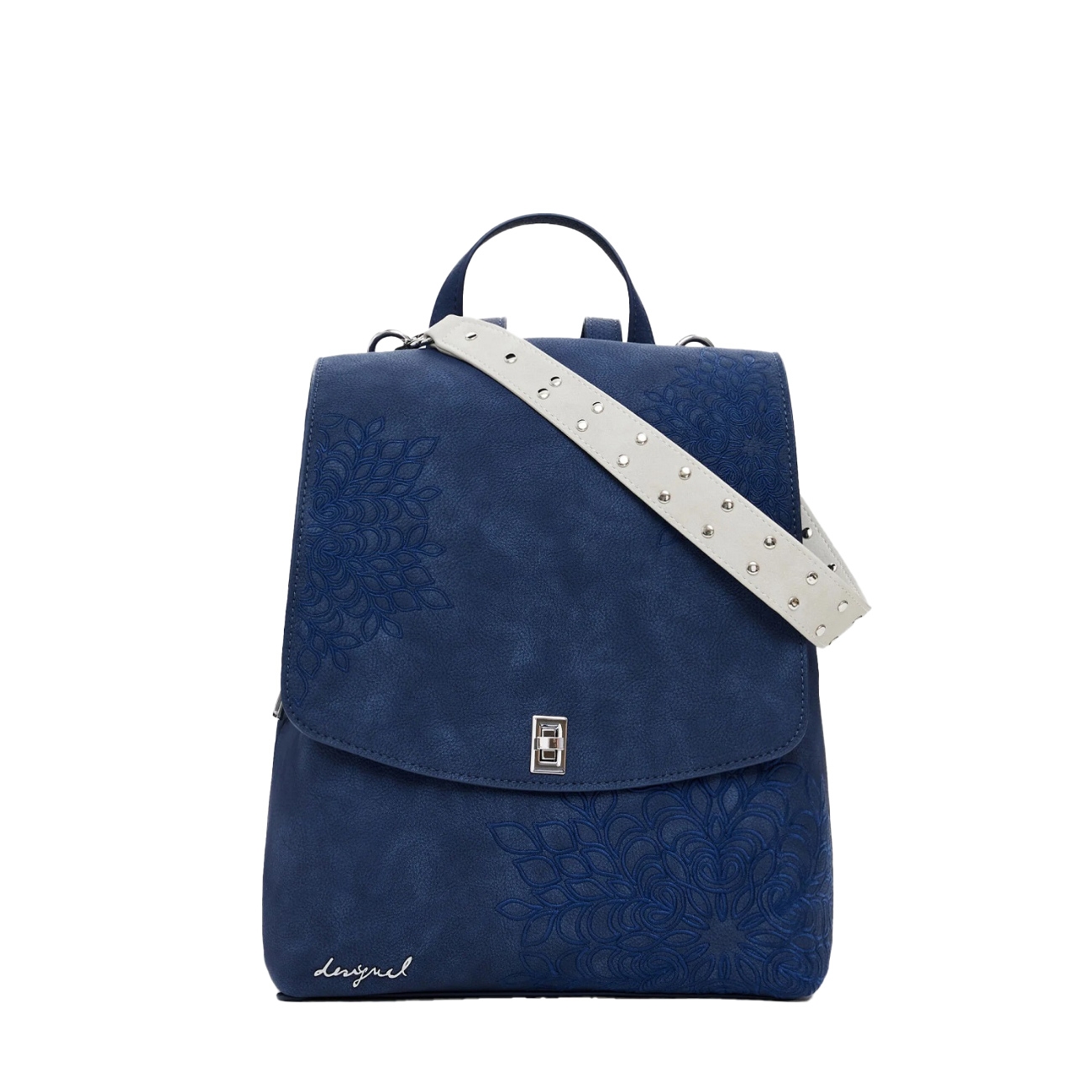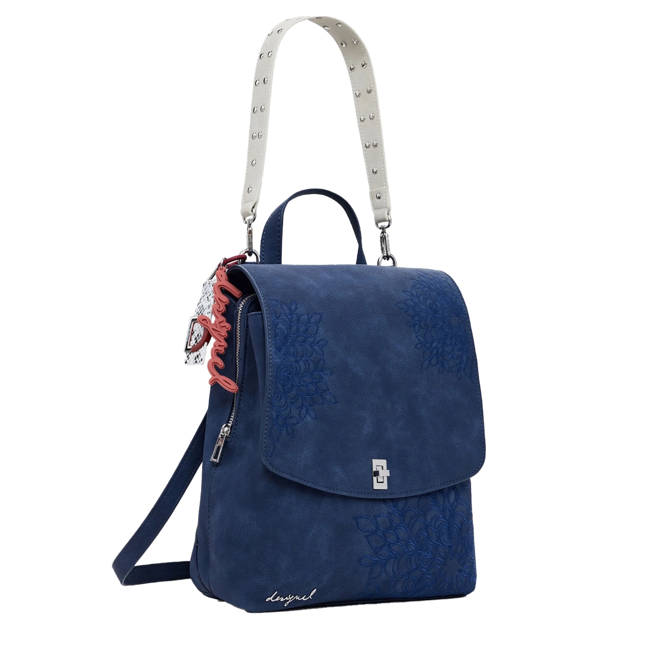 Small Embossed Flap Backpack Blau Desigual Rucsacuri