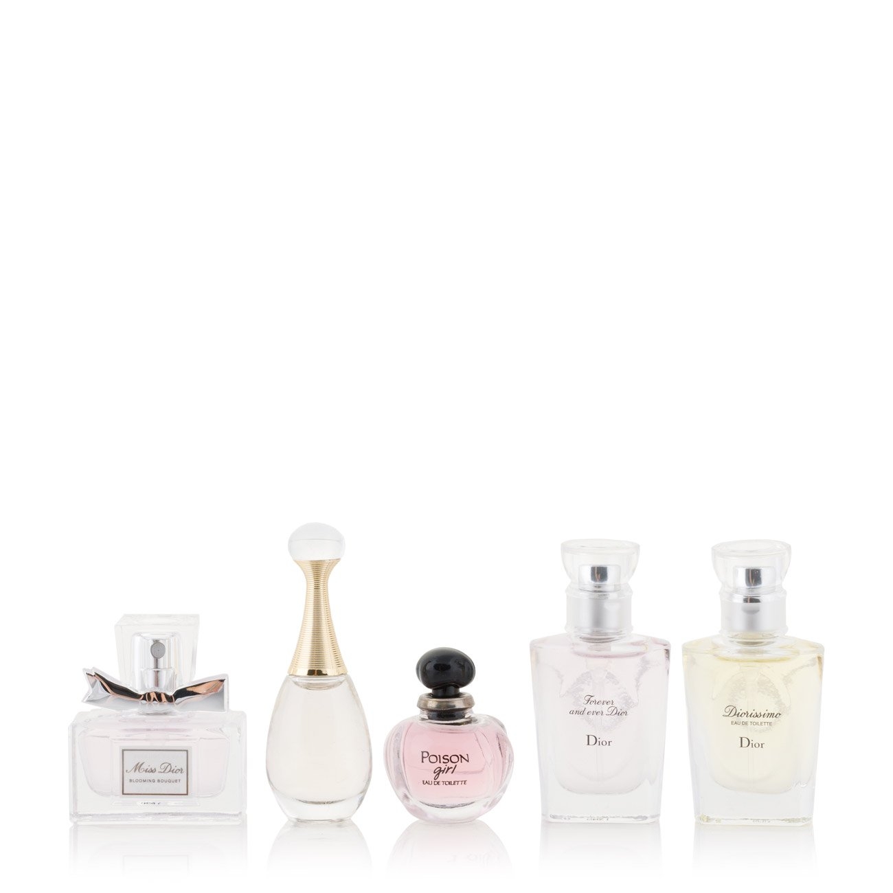 Niciunei fane împătimite al brandului Dior nu trebuie să îi lipsească din colecție acest set de miniaturi. Acesta conține cinci parfumuri clasice și iconice ale casei Dior: Poison Girl, Miss Dior Blooming Bouquet, Forever And Ever Dior, J’Adore, Diorissimo.