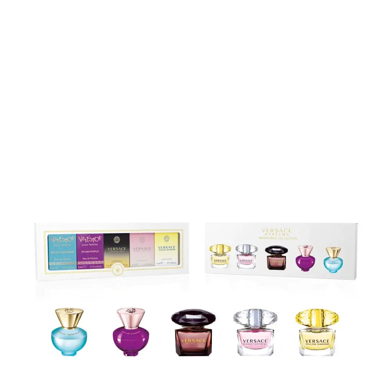 Setul Versace Coffret este o colecție exclusivă de miniaturi de parfumuri, oferind oaspeților oportunitatea de a experimenta eleganța și senzualitatea caracteristică brandului Versace. Setul conține cinci mini parfumuri iconice: Bright Crystal, Crystal Noir, Yellow Diamond, Dylan Purple și Dylan Turquoise, fiecare reprezentând o combinație unică de note proaspete și intense, pline de energie vitală și accente seducătoare. Acest set este perfect pentru a descoperi diversitatea aromelor Versace într-un mod elegant și compact.