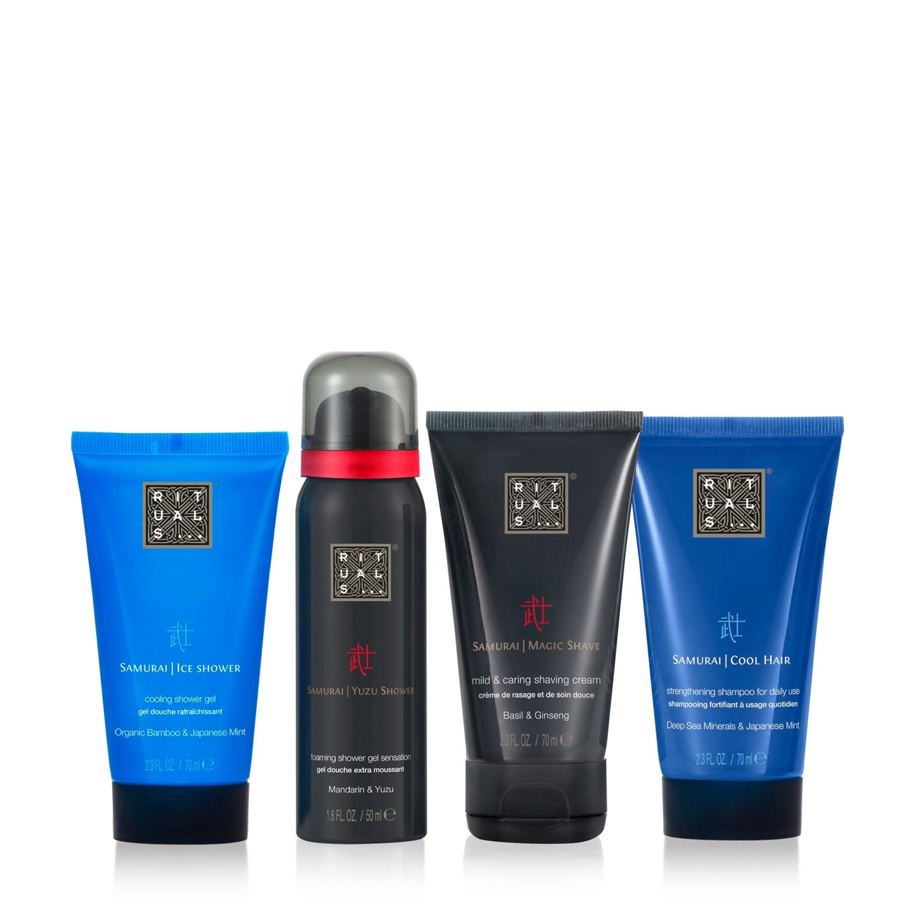Rituals încearcă prin gama de produse Samurai să aducă bărbaților acel sentiment de mândrie și maiestuozitate. Principalele acorduri sunt date de prospețimea bambusului organic și de misteriosul lemn de cedru. Acest amestec de arome este liniștitor și relaxant oferindu-ți revitalizarea de care orice bărbat are nevoie. Setul conține un gel de duș răcoritor, un gel de duș tip spumă, un șampon și o cremă de ras.