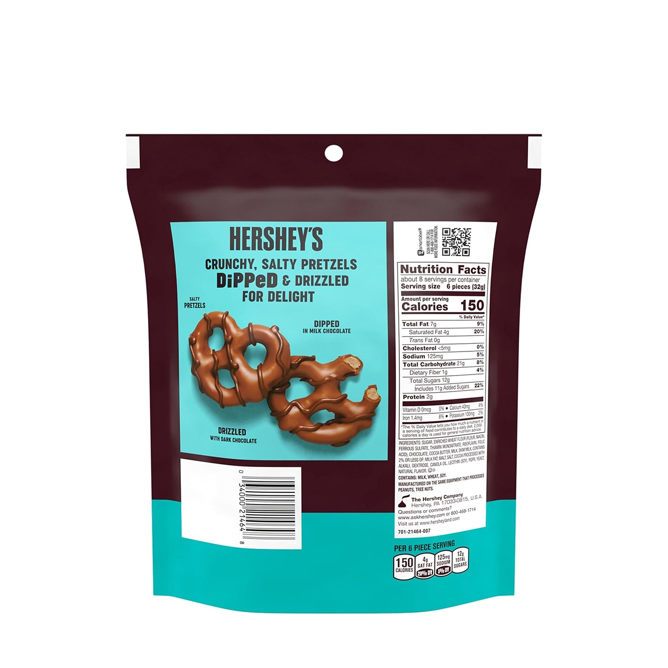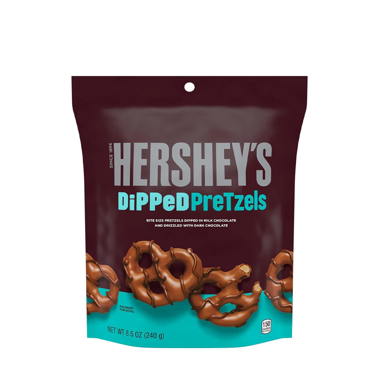 HERSHEY'S DiPPeD PreTzels – Gustarea perfect echilibrată între dulce și sărat! Acești covrigei aurii și crocanți sunt acoperiți generos cu ciocolată fină Hershey’s Milk Chocolate, iar pentru un plus de savoare, sunt îmbrăcați într-un strat subtil de Hershey’s Special Dark. Perfectă pentru orice moment al zilei, această gustare îmbină dulceața catifelată cu săratul tentant, oferindu-ți o experiență unică și delicioasă. Savurează-i singur sau împarte-i cu cei dragi!