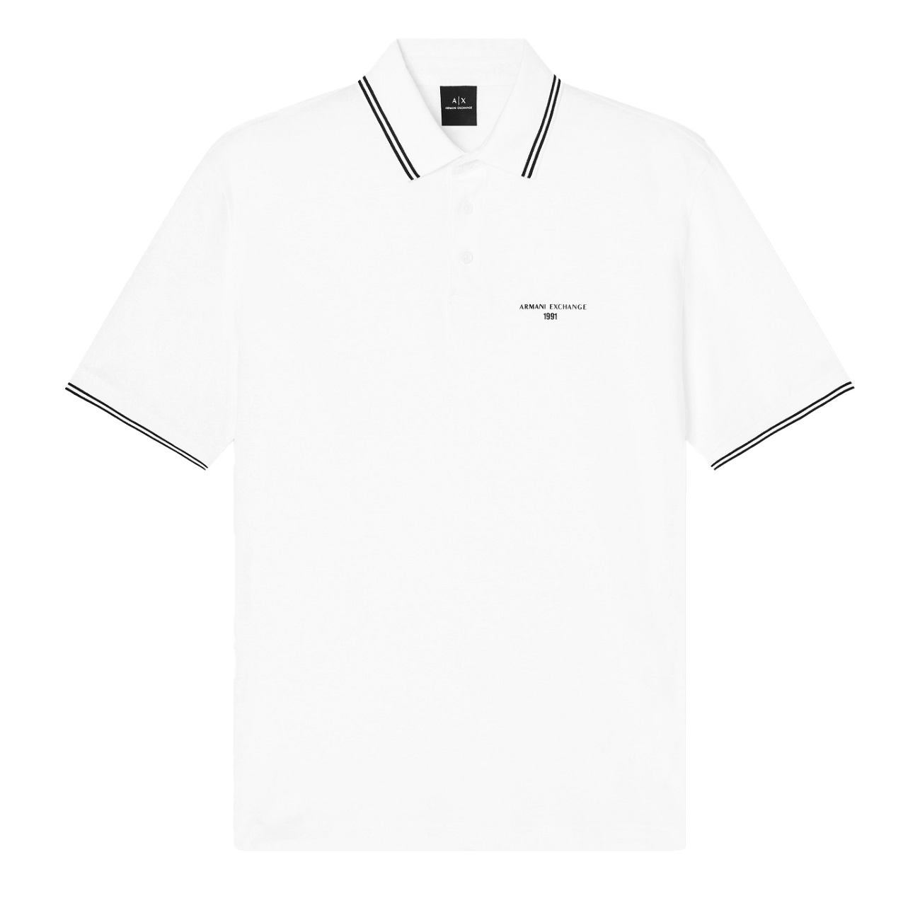 Tricoul polo din bumbac îmbină eleganța casual cu detalii subtile care îi accentuează rafinamentul. Modelul are guler clasic cu trei nasturi, margini cu dungi contrastante și logo Armani Exchange 1991 discret aplicat pe piept. Țesătura moale oferă confort, iar croiala versatilă îl face ideal pentru ținute de zi sau casual-smart.