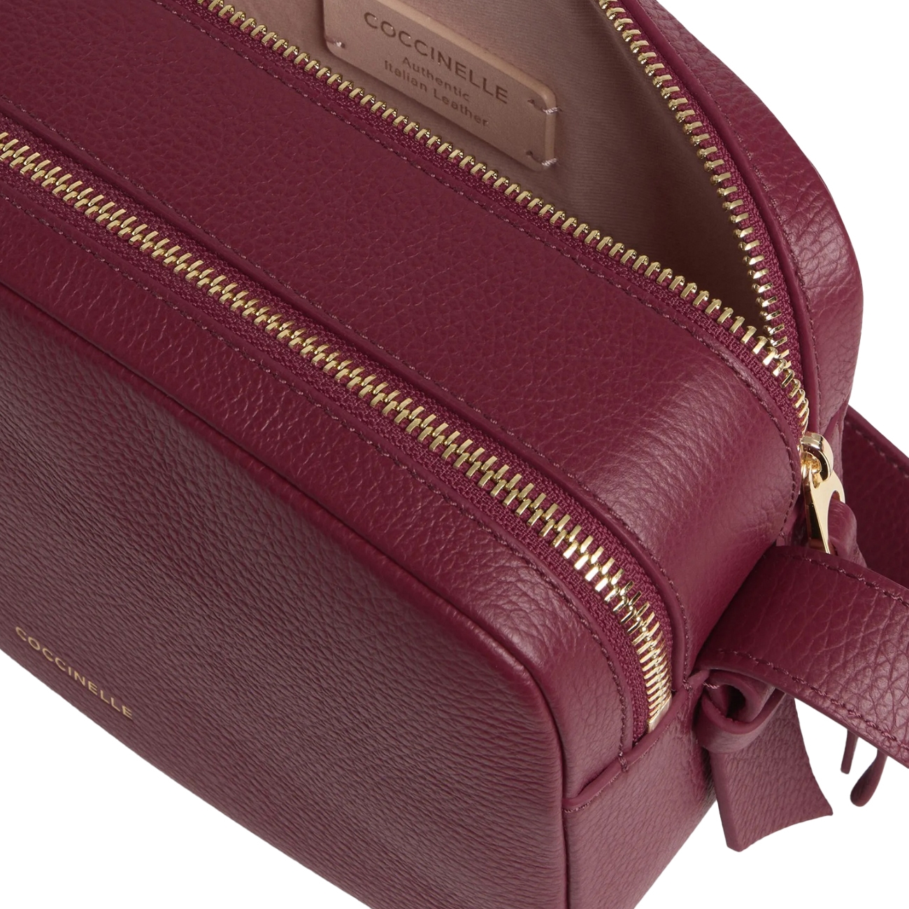 Geantă crossbody Coccinelle din colecția Malory, creată din piele naturală texturată, cu un design compact și modern. Liniile curate și proporțiile echilibrate oferă un aer rafinat, completat de detaliile metalice aurii și de logo-ul discret ștanțat în față. Cureaua de umăr reglabilă și fermoarul superior asigură confort și funcționalitate, iar compartimentele interne bine gândite păstrează ordinea perfectă. Un accesoriu elegant și versatil, ideal pentru zilele active sau serile petrecute în oraș, adăugând o notă stylish oricărei ținute.