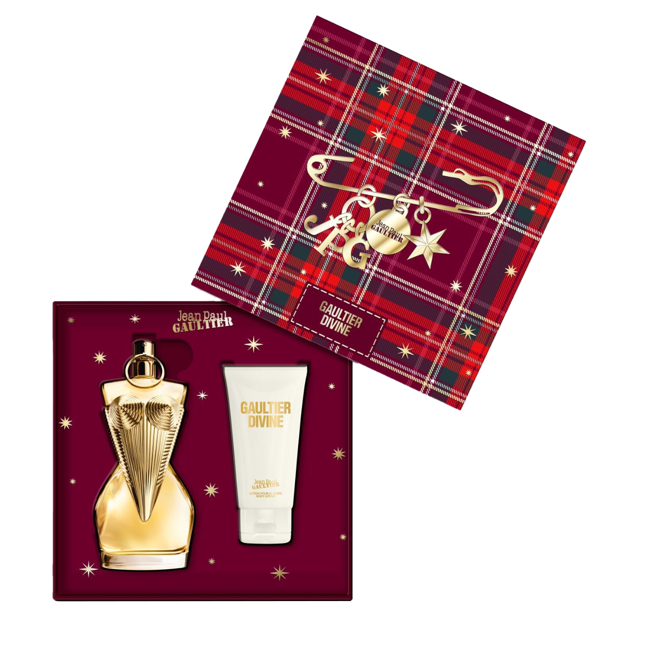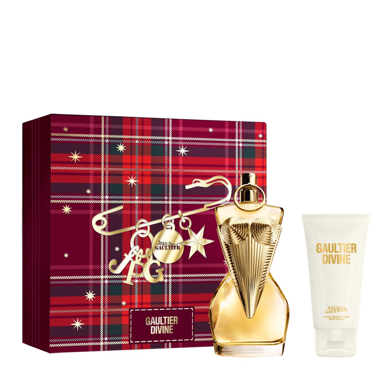 Setul Jean Paul Gaultier Gaultier Divine este un travel exclusive ce aduce un omagiu feminității îndrăznețe și pline de farmec. Conține Eau de Parfum și o loțiune parfumată pentru corp, perfecte pentru a completa ritualul de frumusețe și a prelungi intensitatea parfumului.